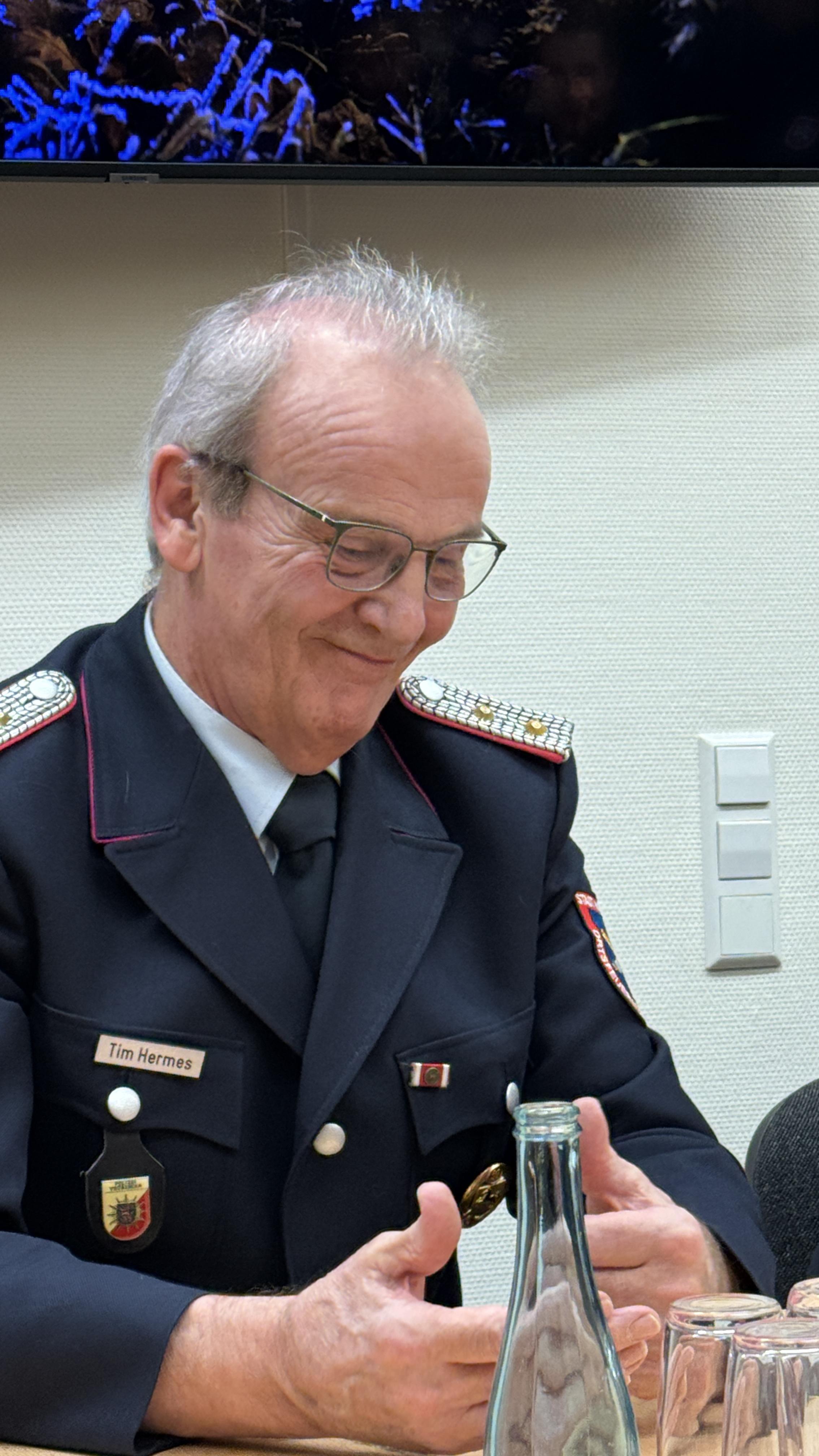 Über 50 Jahre war Tim Hermes Feuerwehrmann. Stets bereit, Dienst am Nächsten zu leisten. Fast 26 Jahre lang war er Ortsbrandmeister und trug als Chef der Harener Ortsfeuerwehr umfassend Verantwortung. „Ich habe immer gern Menschen in Notlagen geholfen“ beschrieb er seine Motivation für den langjährigen Dienst.